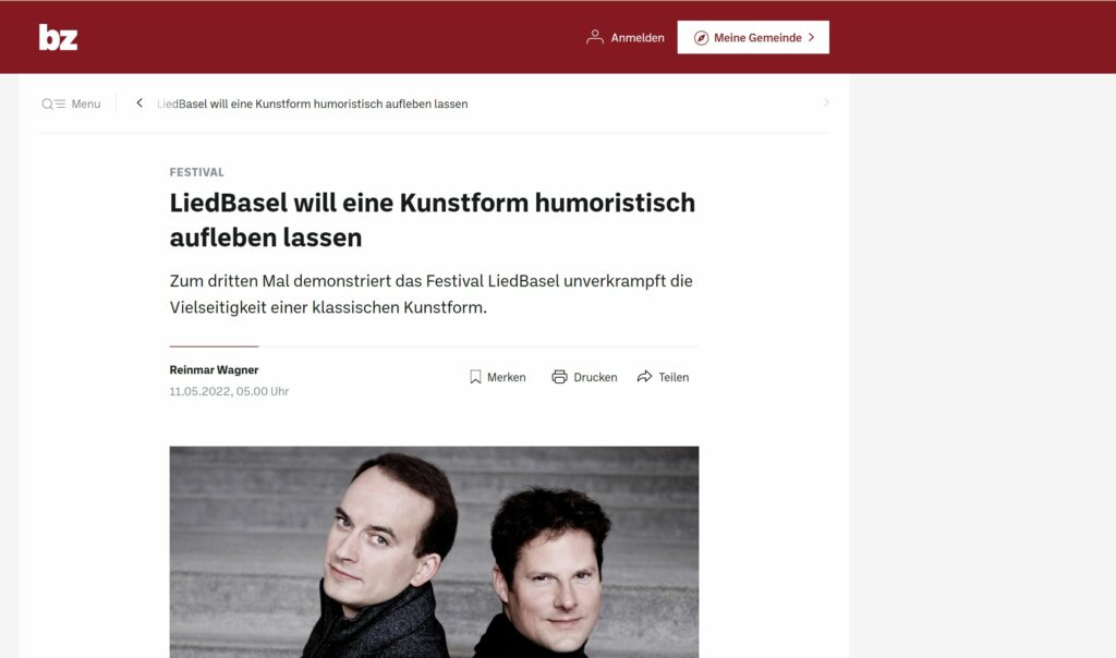 Auch neue Lieder braucht die Welt, das hat sich das Festival zum Ziel gesetzt und von Anfang an Uraufführungen und Auftragswerke präsentiert. Sarah Maria Sun und Jan Philip Schulze bringen diesmal einen für LiedBasel geschriebenen Liederzyklus von Andrea Lorenzo Scartazzini zur Uraufführung.